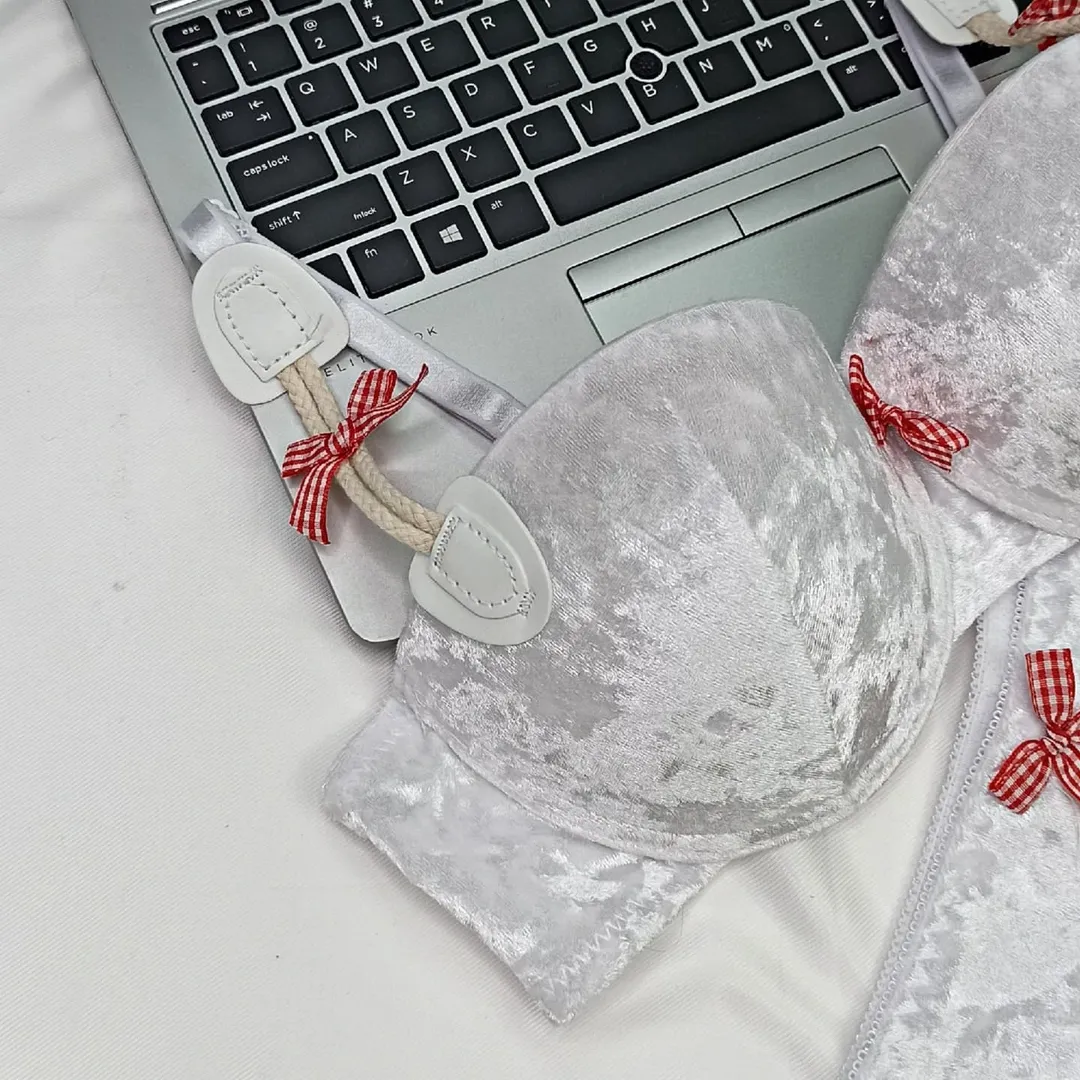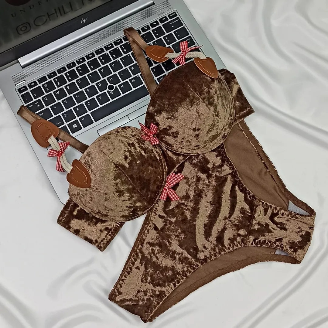 ی ست مخمل که دل خیلی ها رو برده،، پاپیوناشو ببین آخه ست مخمل دکلته ،اسفنجی ، بدون جک سایز : ۹۰/۸۵/۸۰/۷۵ کاپ B بندهای شونه قابل تنظیم ، شورت کلاسیک با فاق نخی کیفیت پارچه و دوخت عالی و مناسب تمام فصول